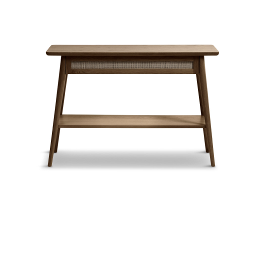 Vista Konsolbord kombinerer det varme og naturlige udseende af eg melamin med et moderne og let stel.