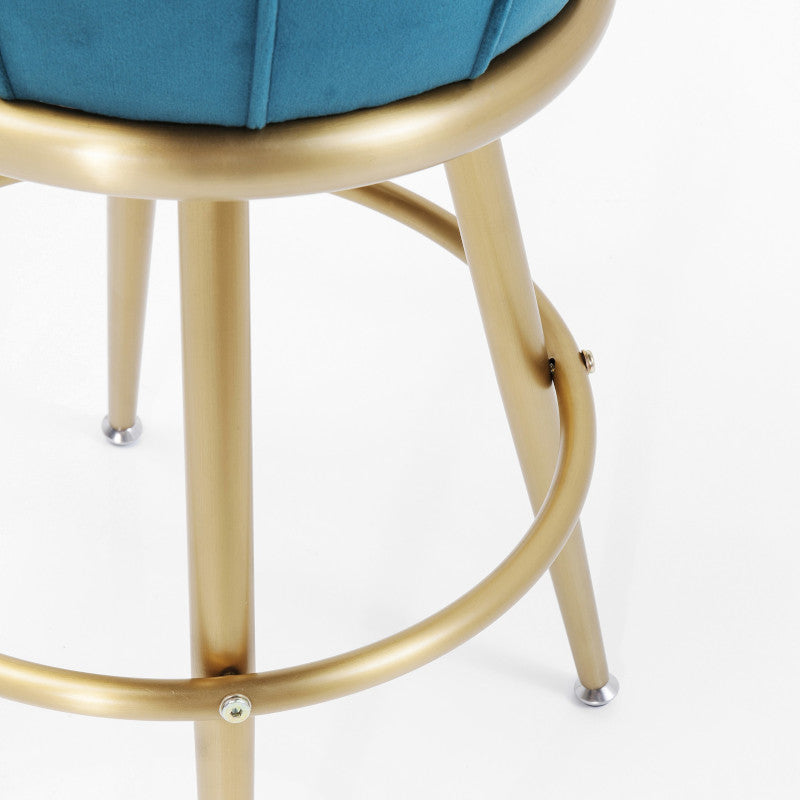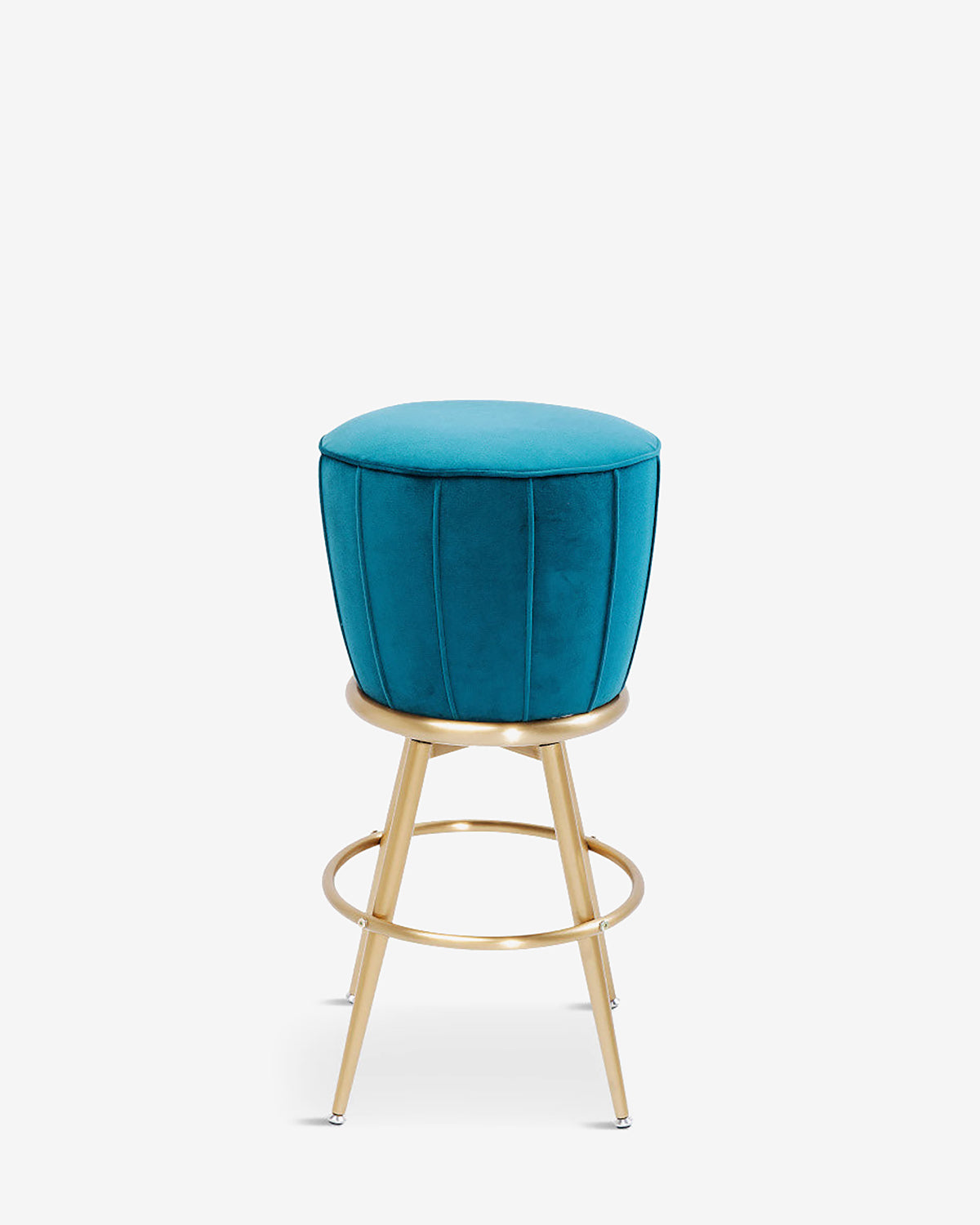 Elegant og moderne barstol i blå velour med flot stel i messing.