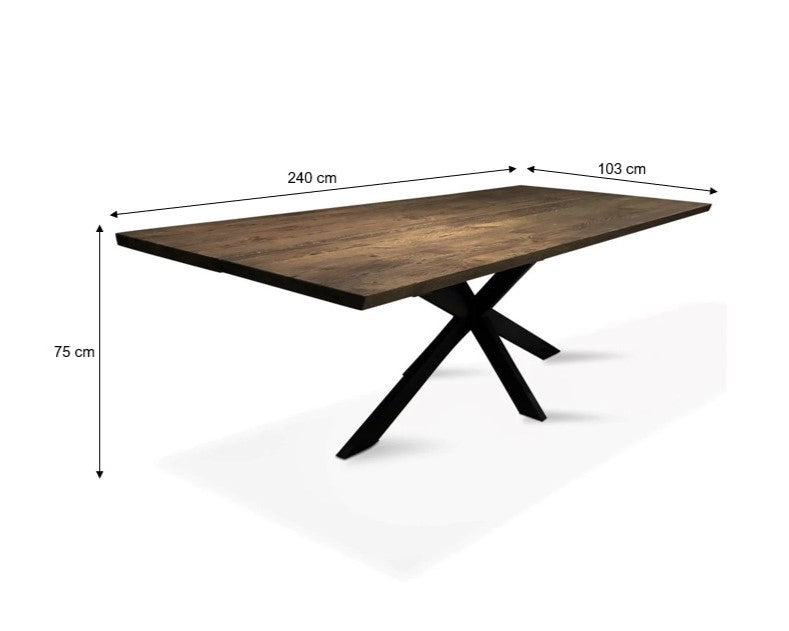 De flotte krydsstillede ben af sort metal er blevet meget populære og de giver spisebordet et rustikt og industrielt, men samtidig stilfuldt design, der passer perfekt til den nordiske stil.