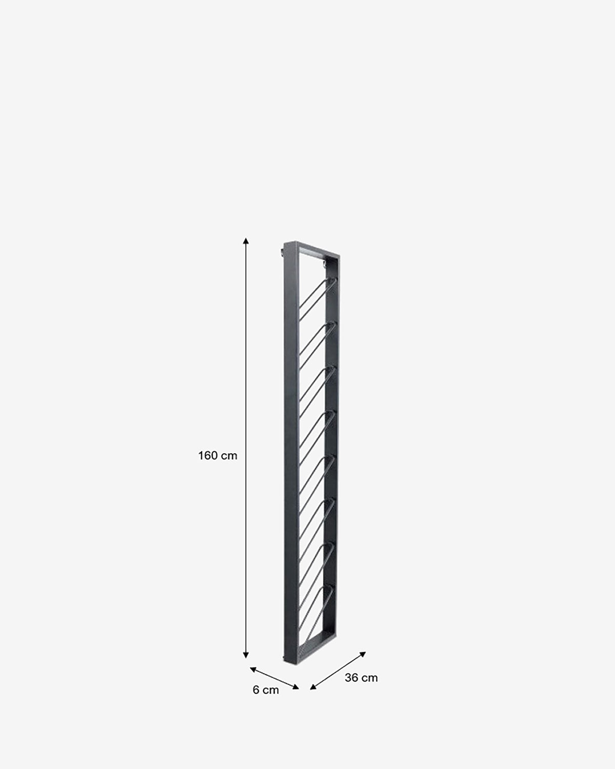 Dekorativ vinreol til ophæng på væggen. Rå industriel stil der giver kant til køkkenet eller stuen. Plads til 8 flasker.