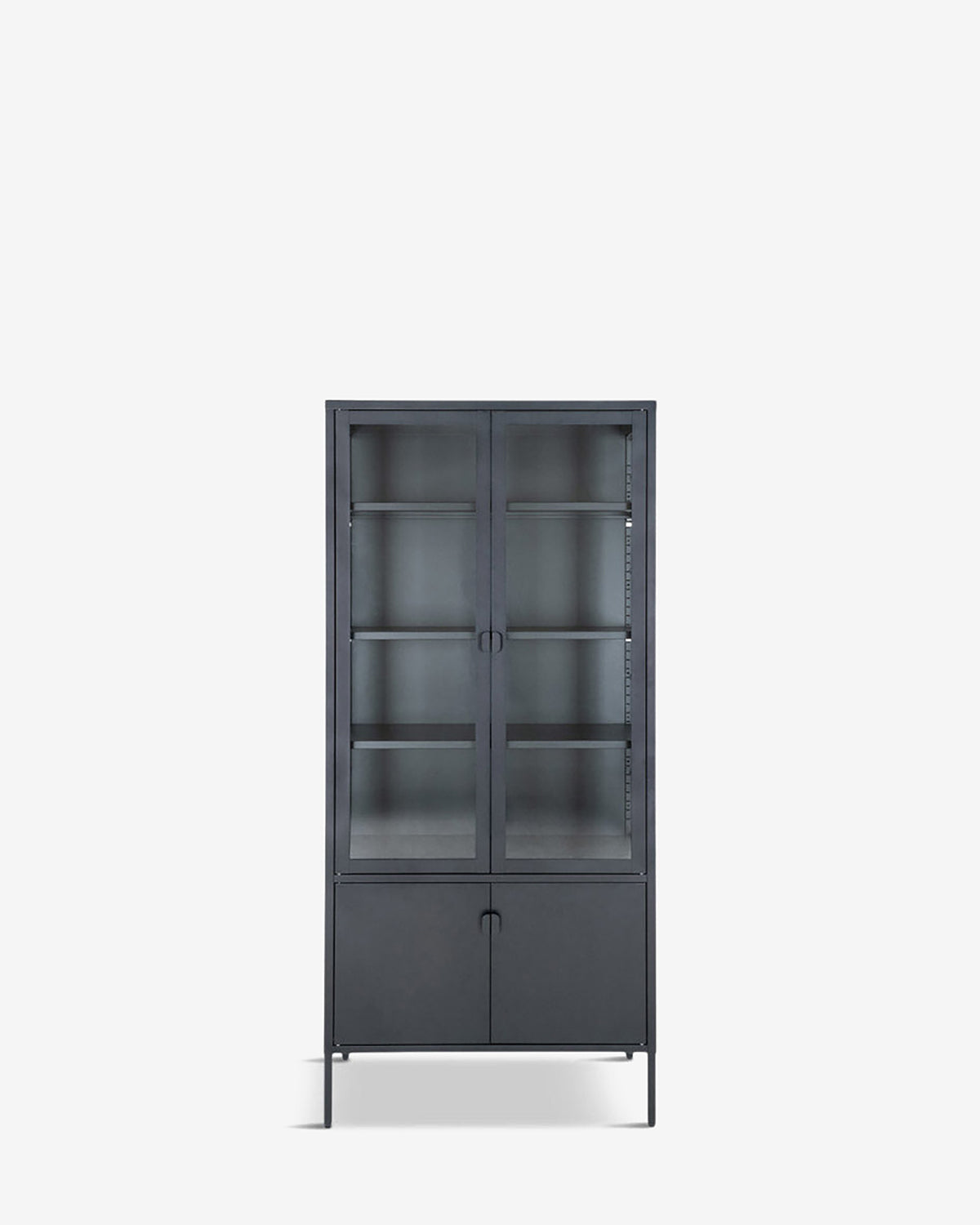 Giv dit hjem et moderne præg med vores Brisbane vitrine i elegant sort metal.
