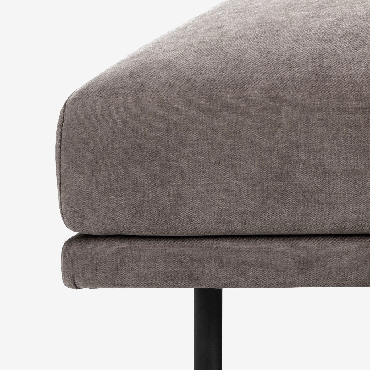 Calma sofaen er skabt til dig, der ønsker et moderne og enkelt formsprog uden at gå på kompromis med komforten. Den er betrukket med slidstærkt stof i farven dusty brown, som giver et varmt og indbydende udtryk. De smalle armlæn og den smalle forkant kombineret med slanke, sorte ben giver sofaen et let og elegant løft fra gulvet.