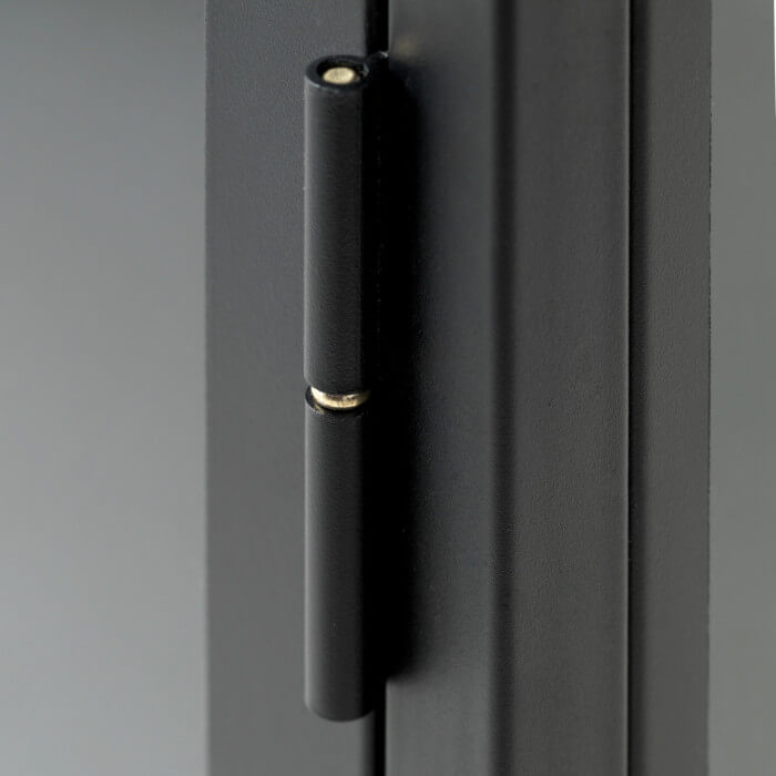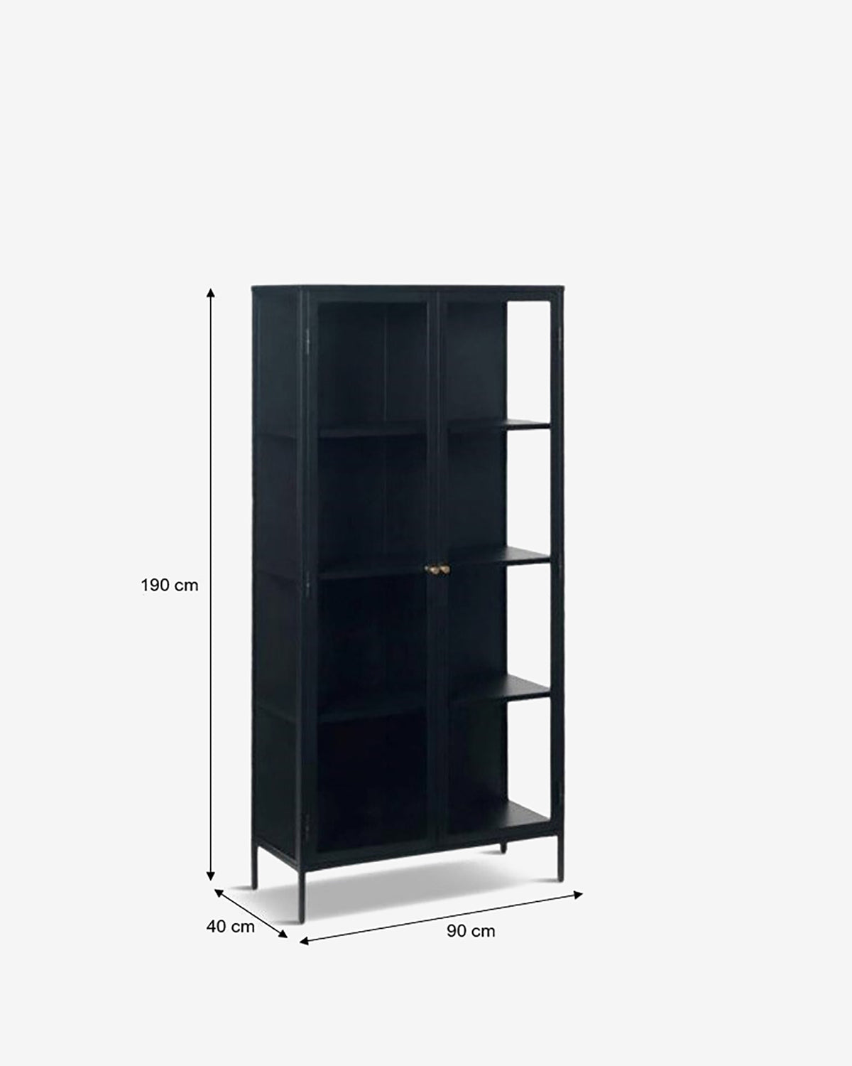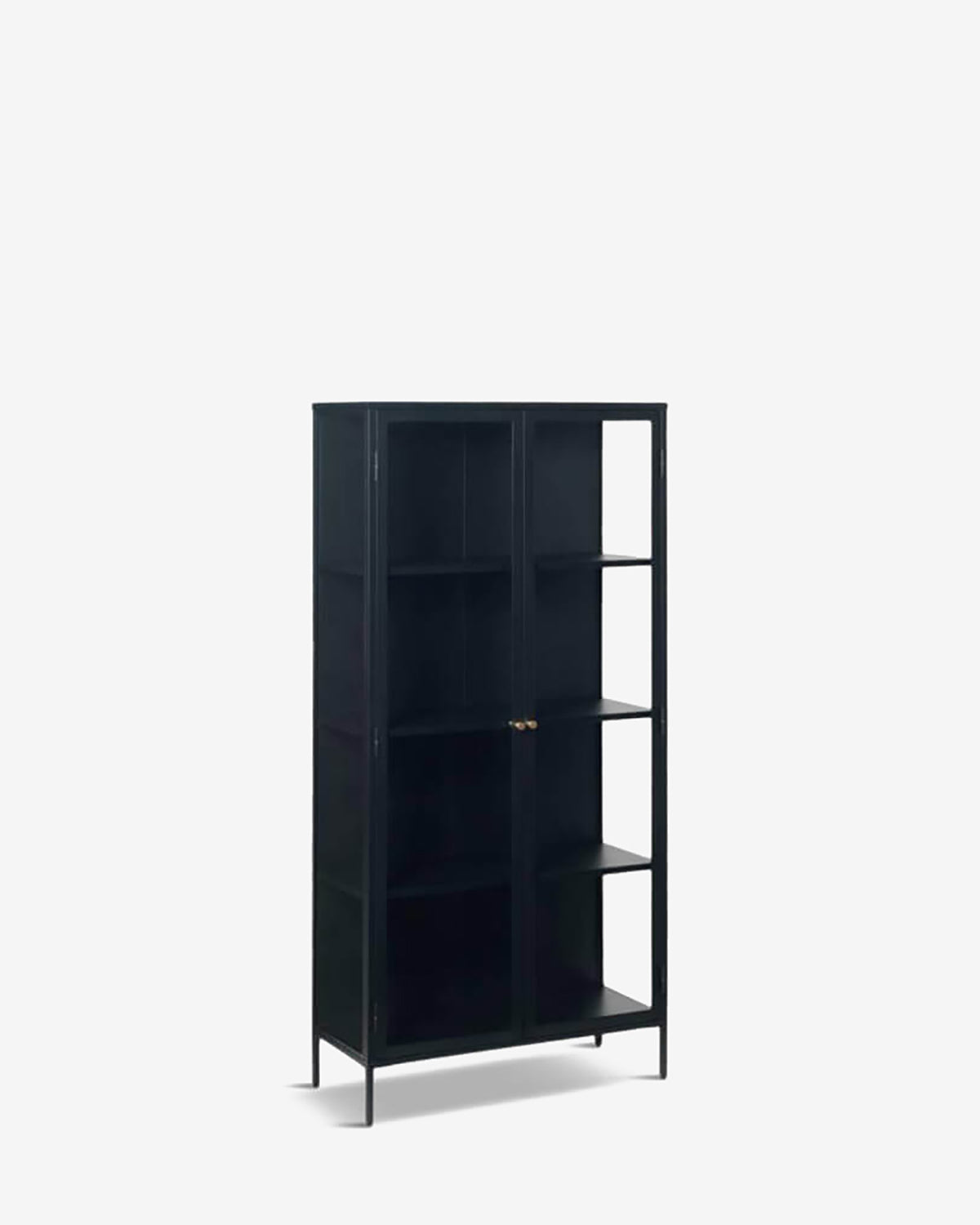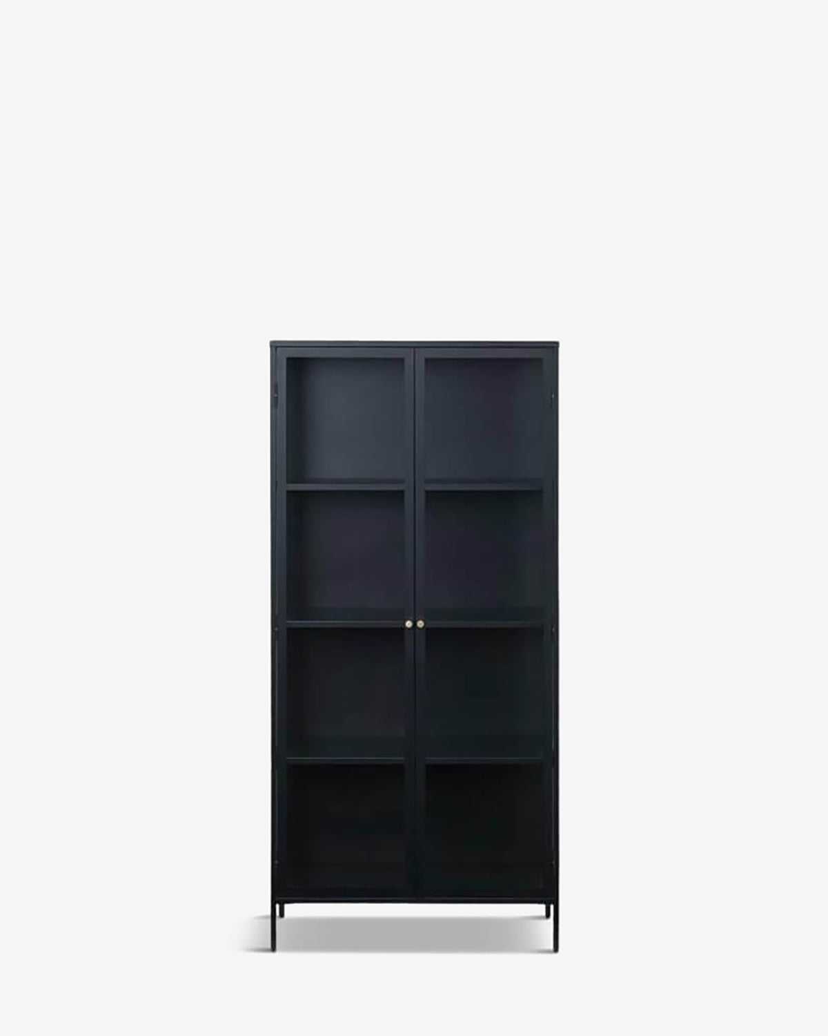 Det høje, flotte Carmel vitrineskab er en smuk kombination af råt metal med et industrielt udtryk.