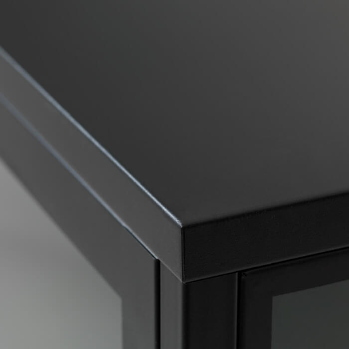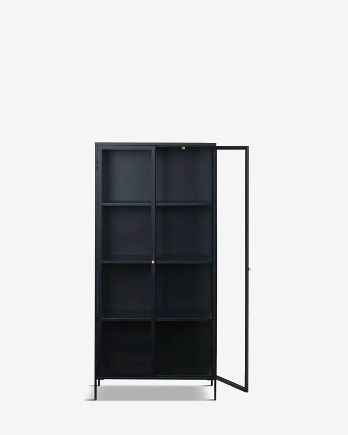 Det fine mix imellem jern og glas giver vitrineskabet et råt og moderne look, der kan være en god kontrast til det stilrene hjem med rene linjer.