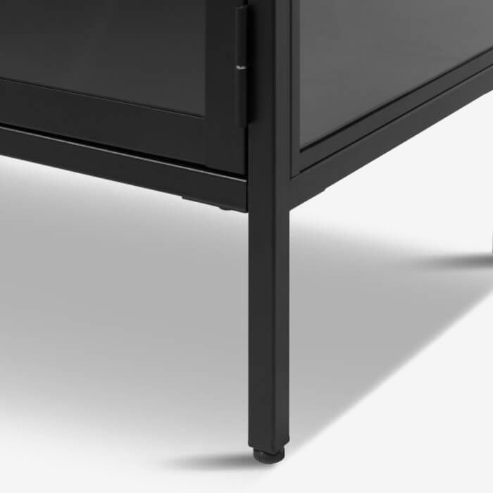 Det flotte Carmel vitrineskab er en smuk kombination af råt metal med et industrielt udtryk.