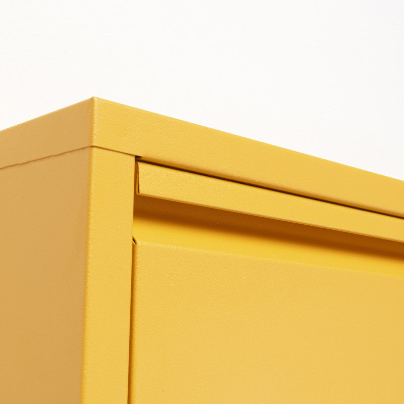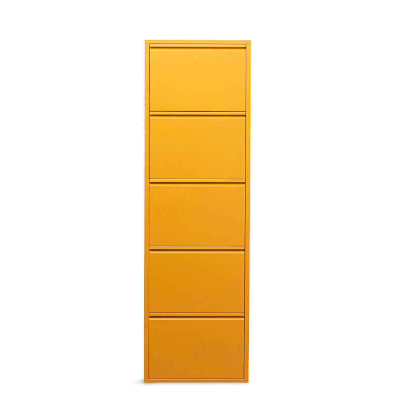 Caruso skoskabet i pulverlakeret stålplade og i en attraktiv gul er et meget stilrent og elegant skoskab.
