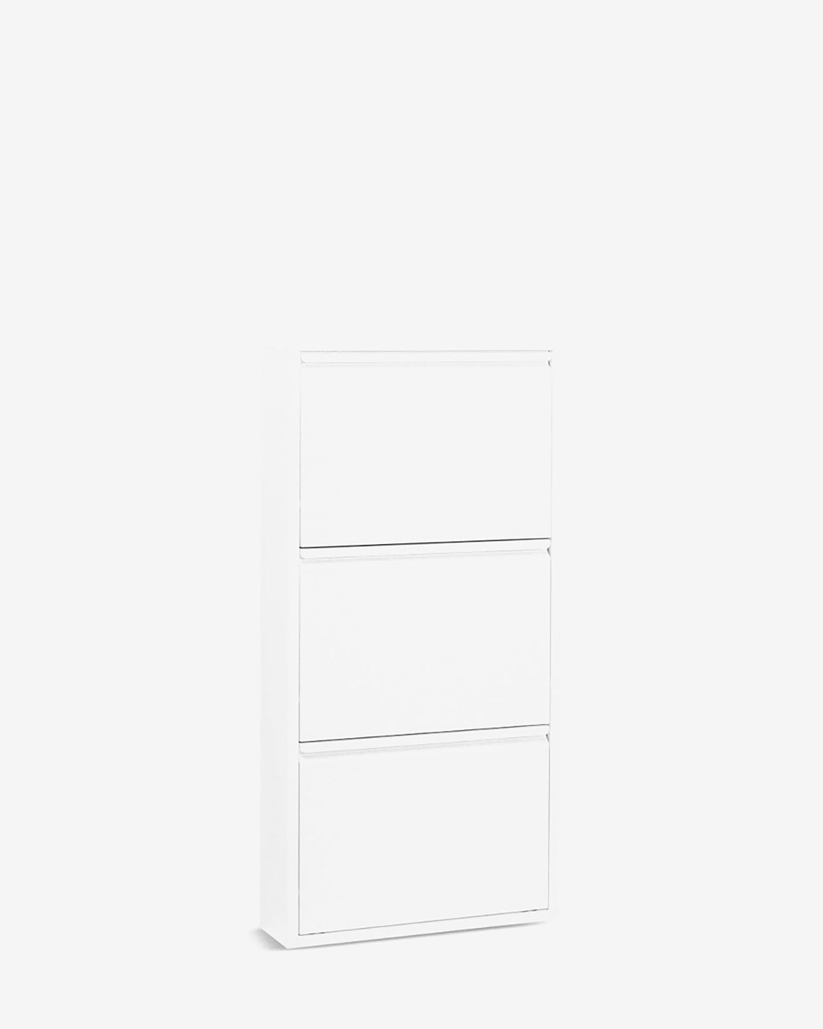 Caruso Skoskab i pulverlakeret metal med attraktiv hvid lakering. Et meget stilrent og elegant opbevaringsmøbel.
