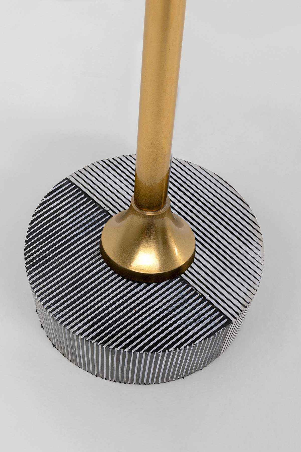 Bordet står på en slank messingstang, som giver et elegant løft og understreger det eksklusive design. Med målene Ø.25 x H.50 cm er det perfekt som sidebord, lampebord eller dekorativ afsætningsplads.