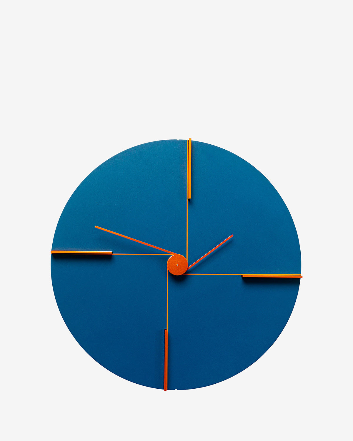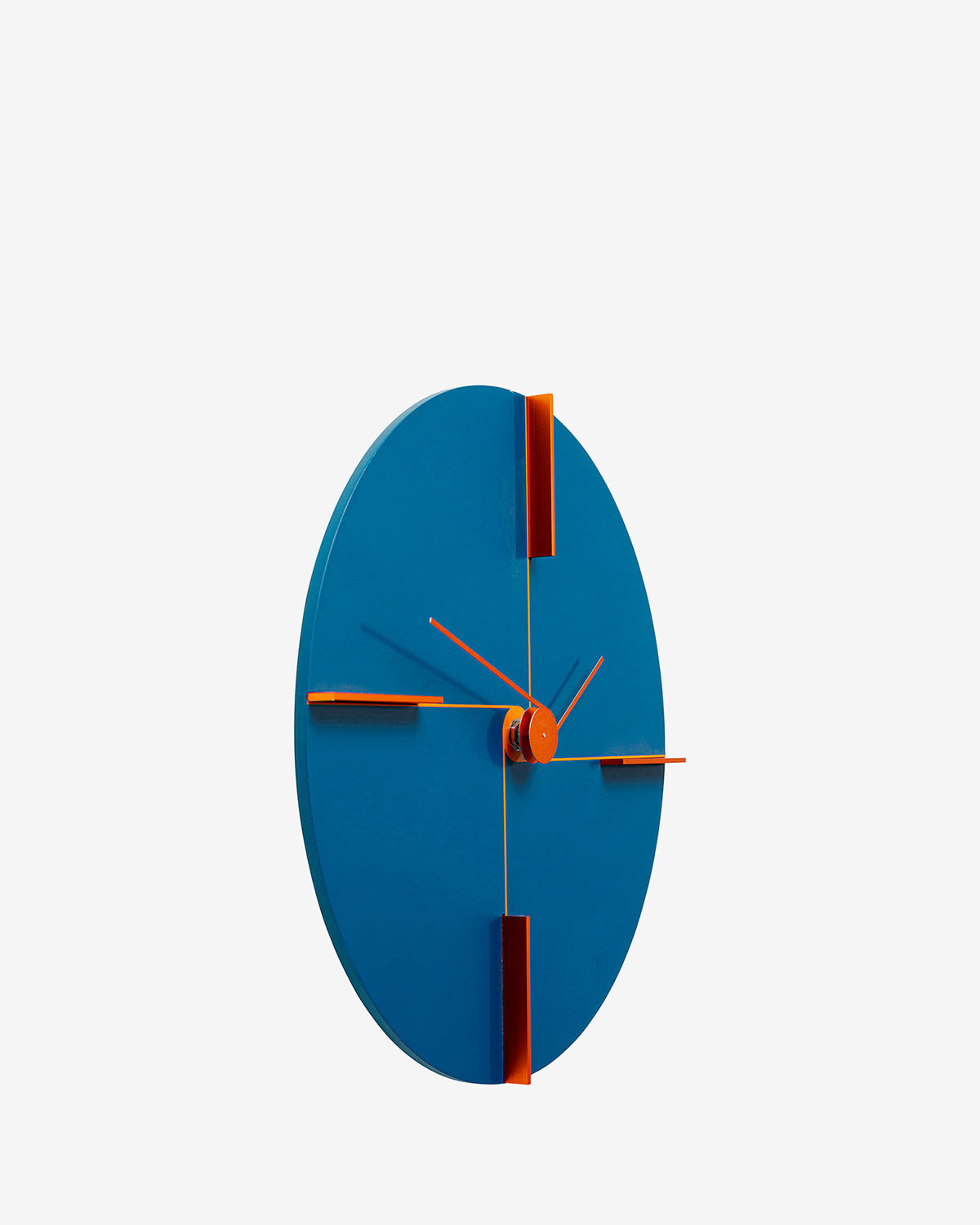 Felice væguret kombinerer funktion og farver med et legende, moderne udtryk. Den matte blå urskive står i flot kontrast til de markante orange visere, som gør det både nemt at aflæse tiden og tilføjer personlighed til væggen.