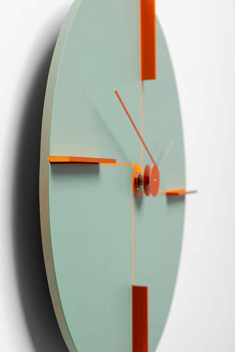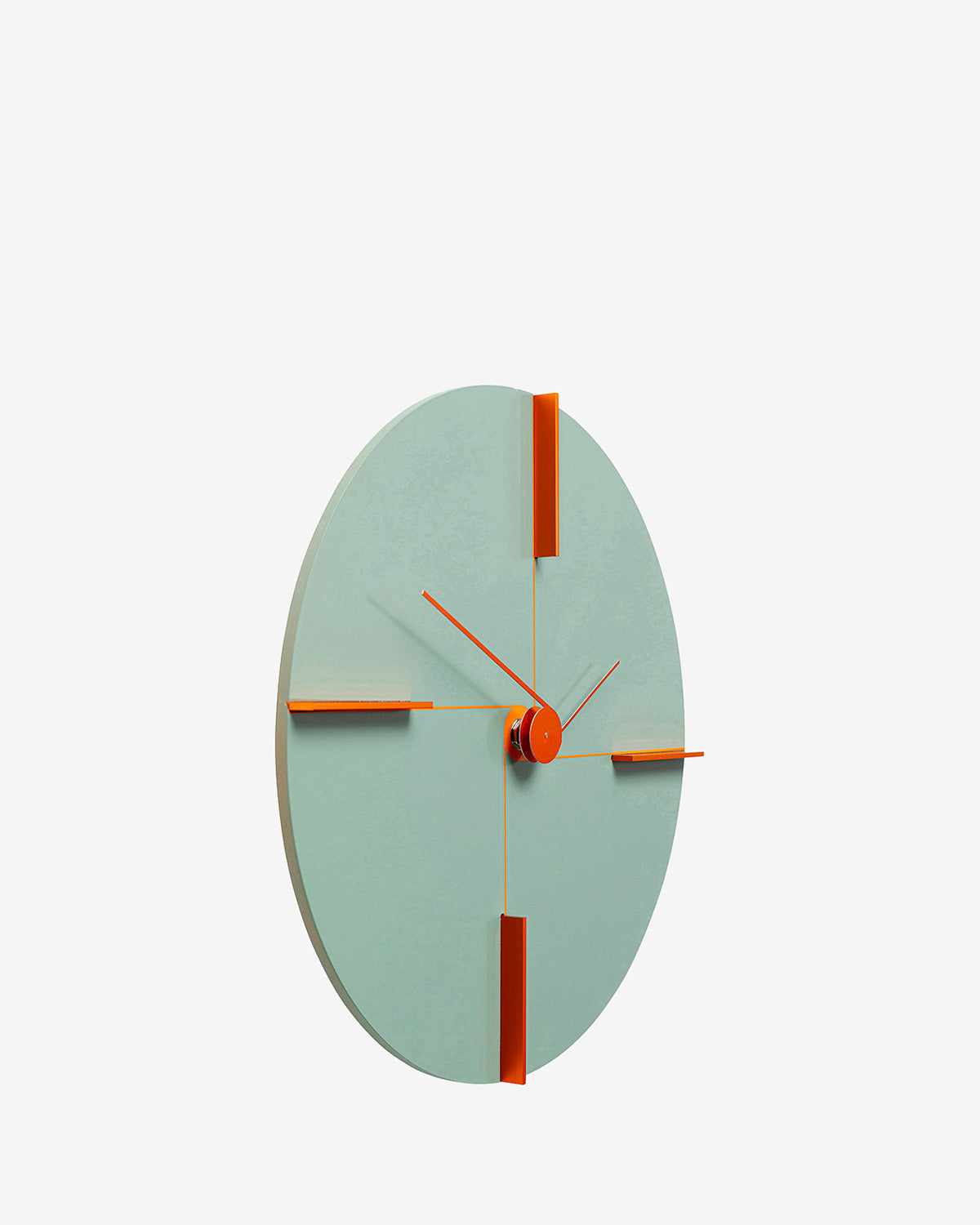 Felice væguret kombinerer funktion og farver med et legende, moderne udtryk. Den matte grønne urskive står i flot kontrast til de markante orange visere, som gør det både nemt at aflæse tiden og tilføjer personlighed til væggen.