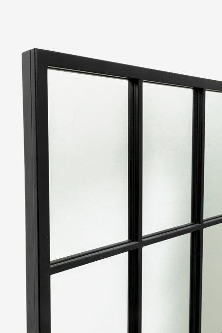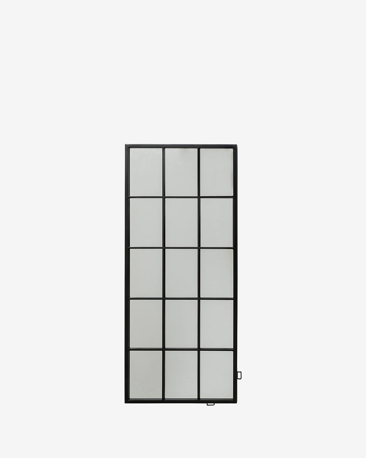 Finestra spejlet er inspireret af klassiske New York-vinduer og tilfører et råt og stilrent udtryk til hjemmet. Den sorte ramme med inddelte felter skaber et arkitektonisk look, der både fungerer som spejl og dekorativt element.