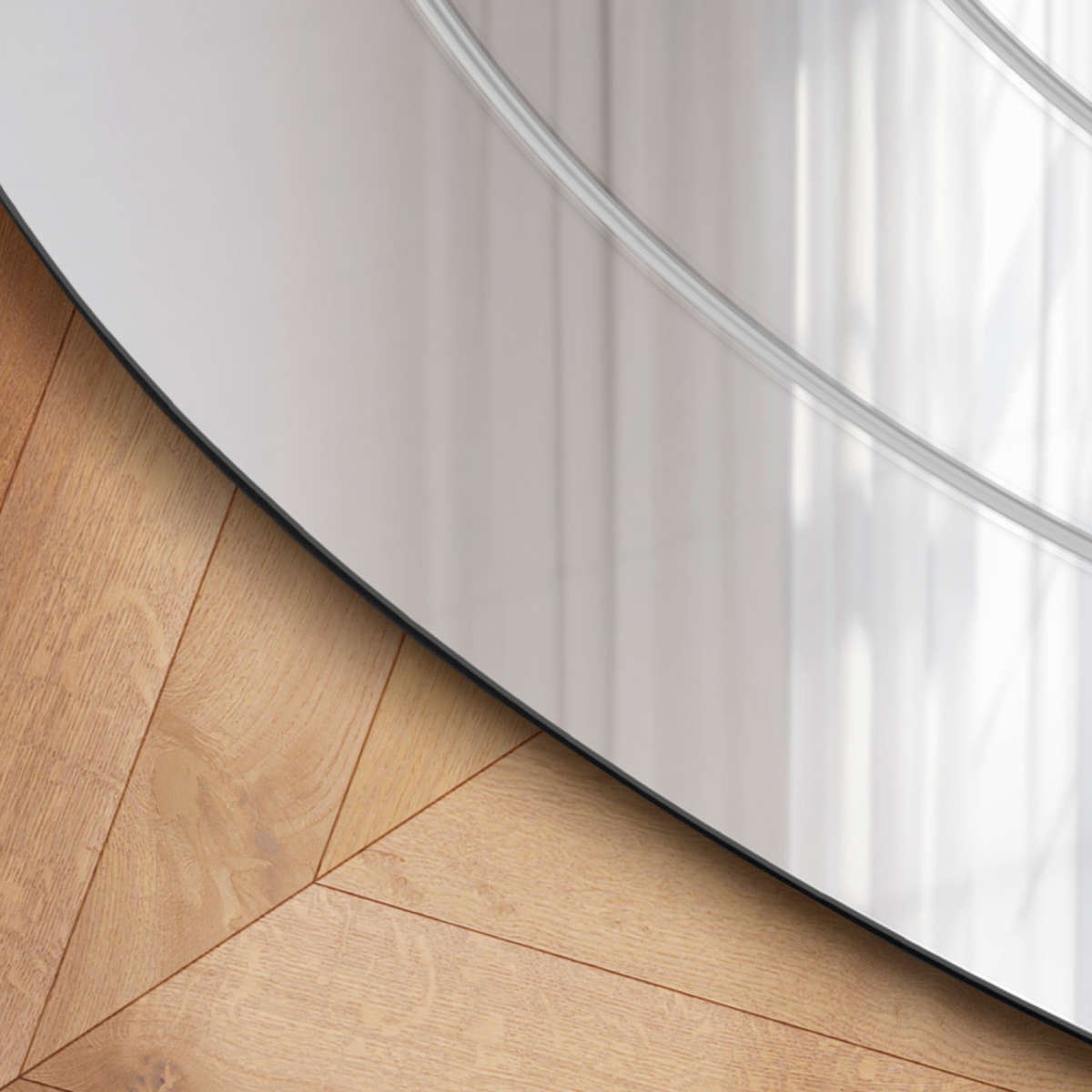 In the Circle spejlet kombinerer funktion med grafisk finesse. De indlagte cirkler i glasset er facetslebne og skaber et smukt spil, når lyset rammer overfladen. Et dekorativt element, der giver spejlet dybde og karakter.