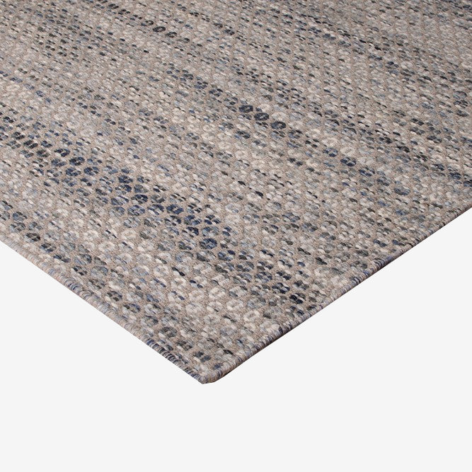 Håndvævet kelim tæppe i høj kvalitet. Java tæppet findes i flere forskellige størrelser - her vist i smukke gråblå nuancer.