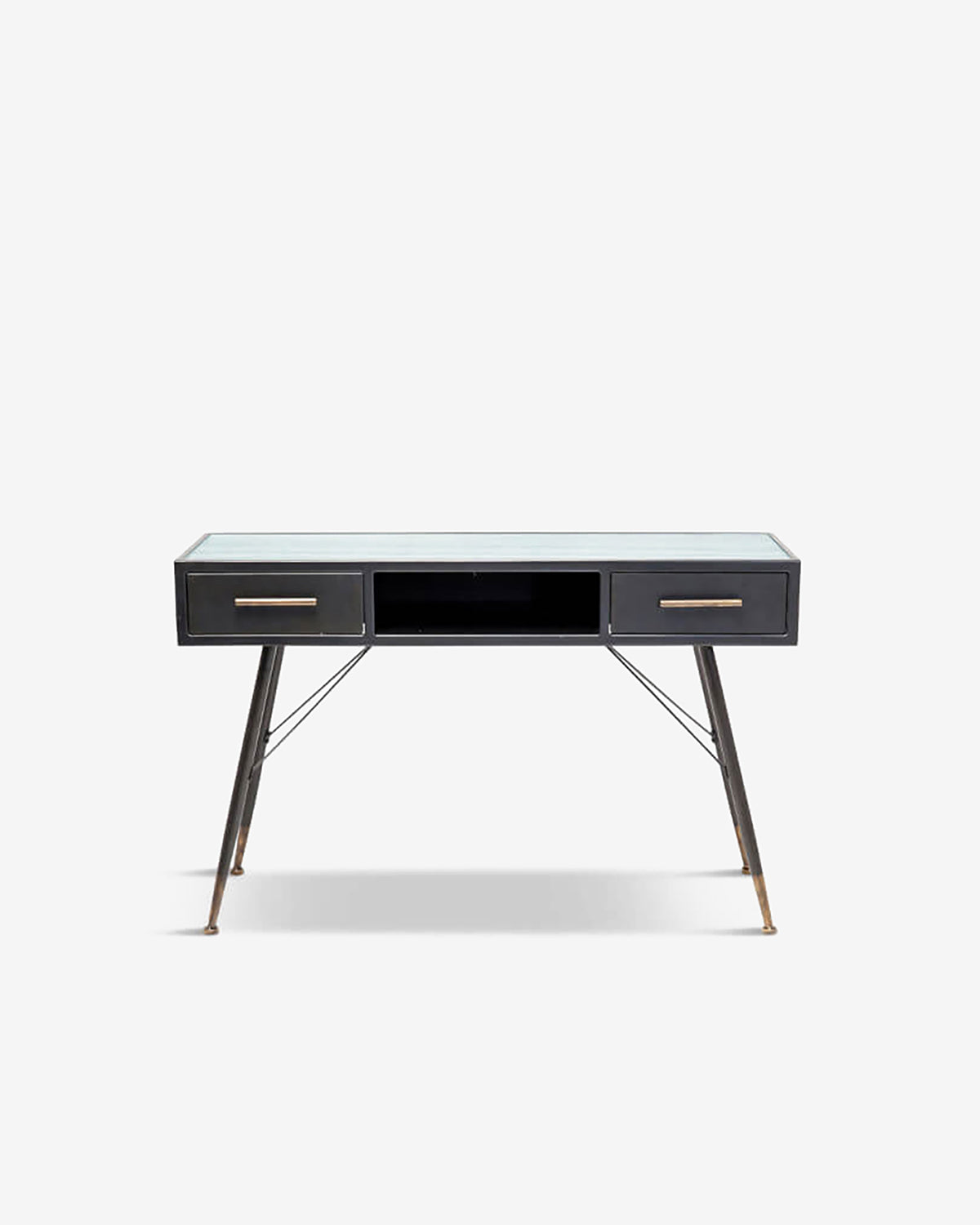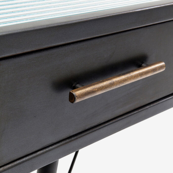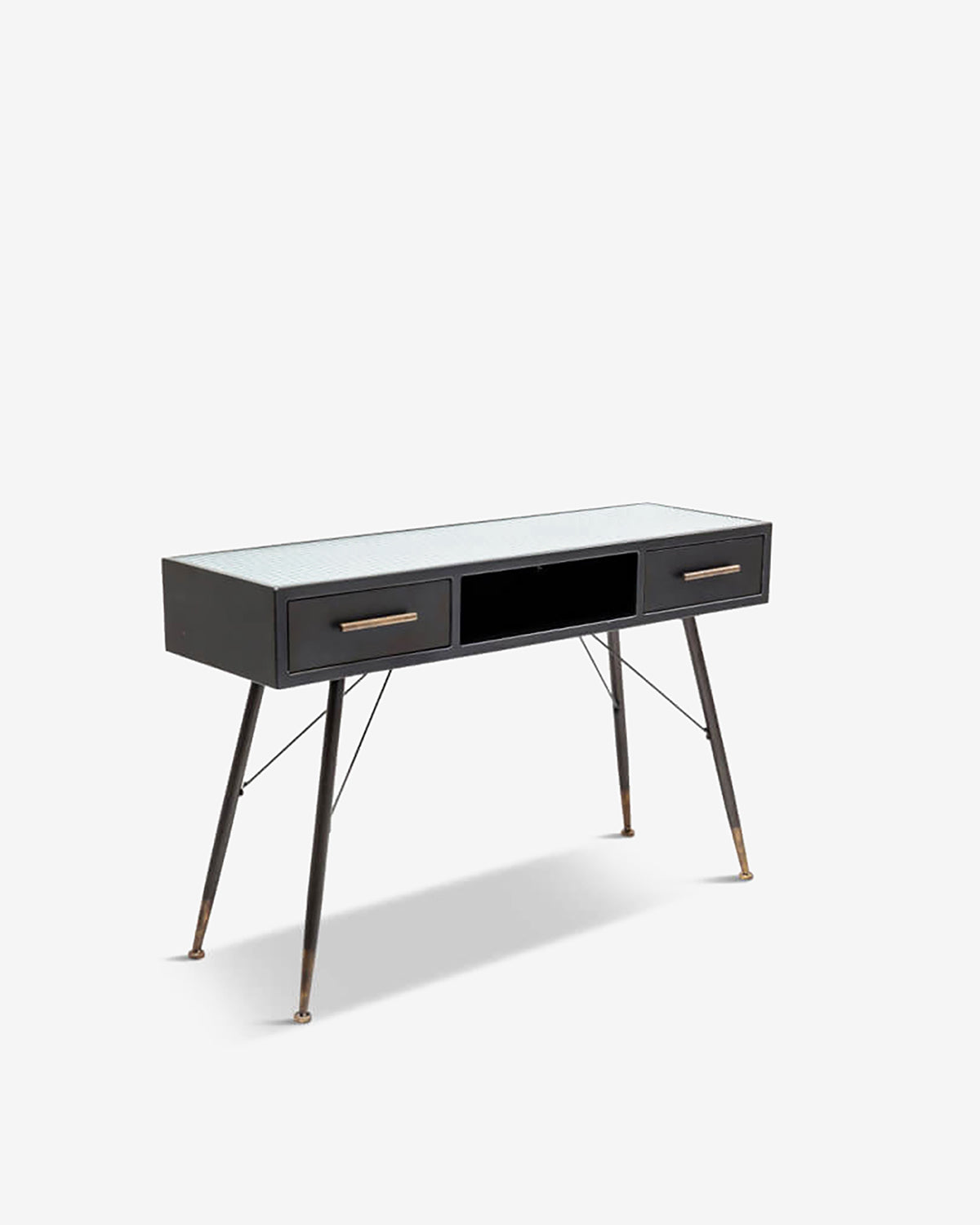 La Gomera er navnet på vores nye flotte serie af møbler fra tyske Kare design. Stilen på konsolbordet er en smuk kombination af rå metal med et industrielt udtryk, og riflet glas på top, sider og låger, som giver en antik retro fornemmelse.