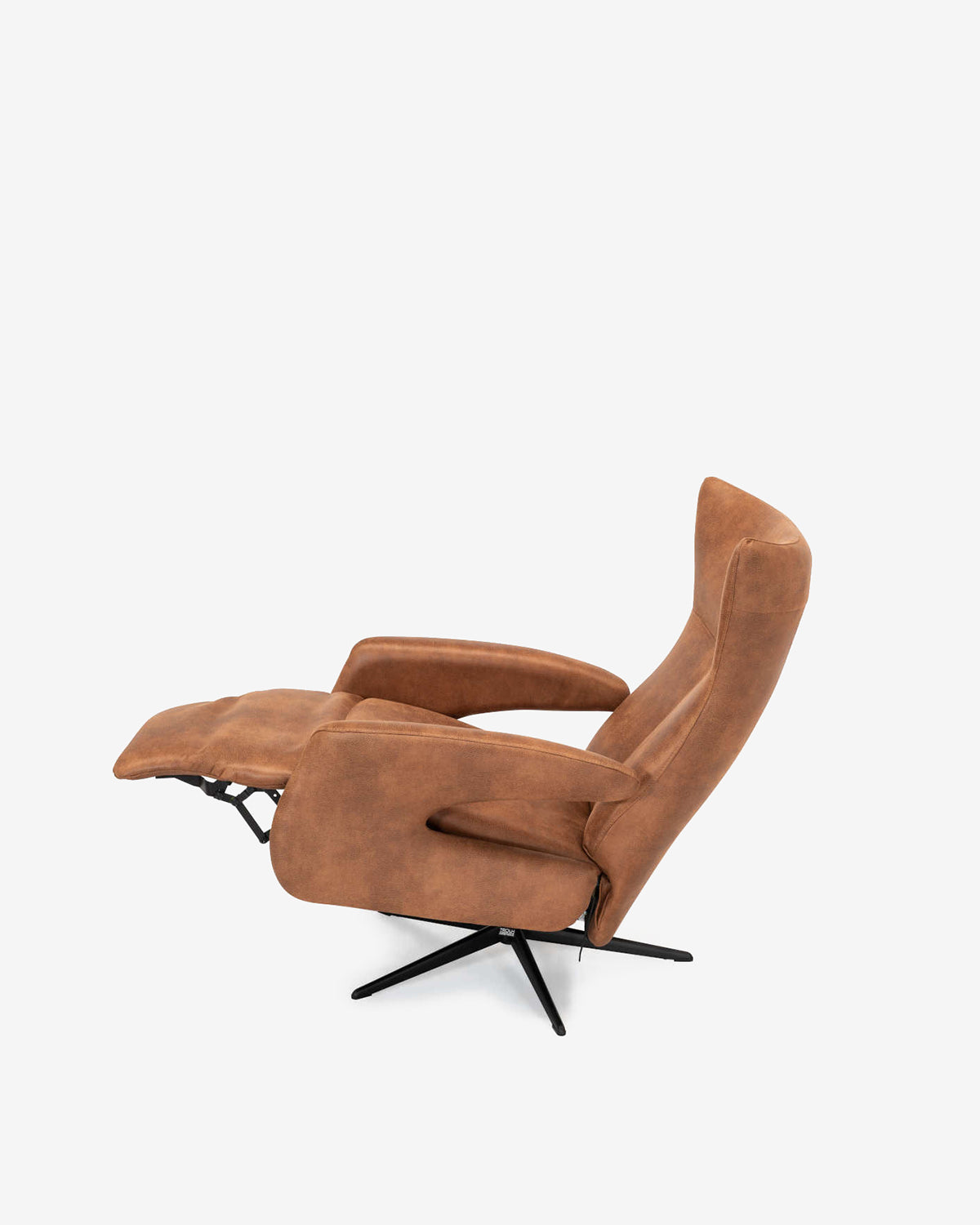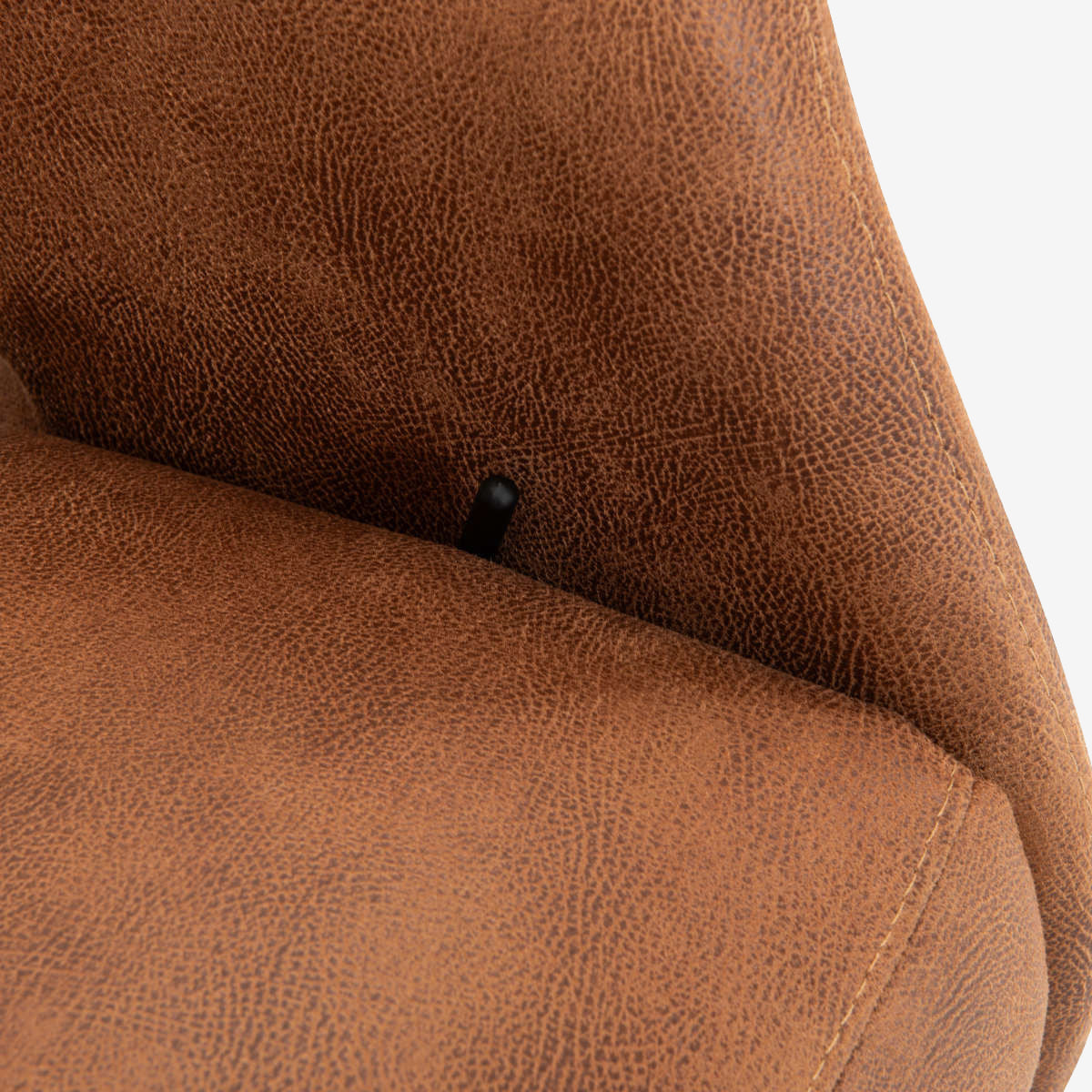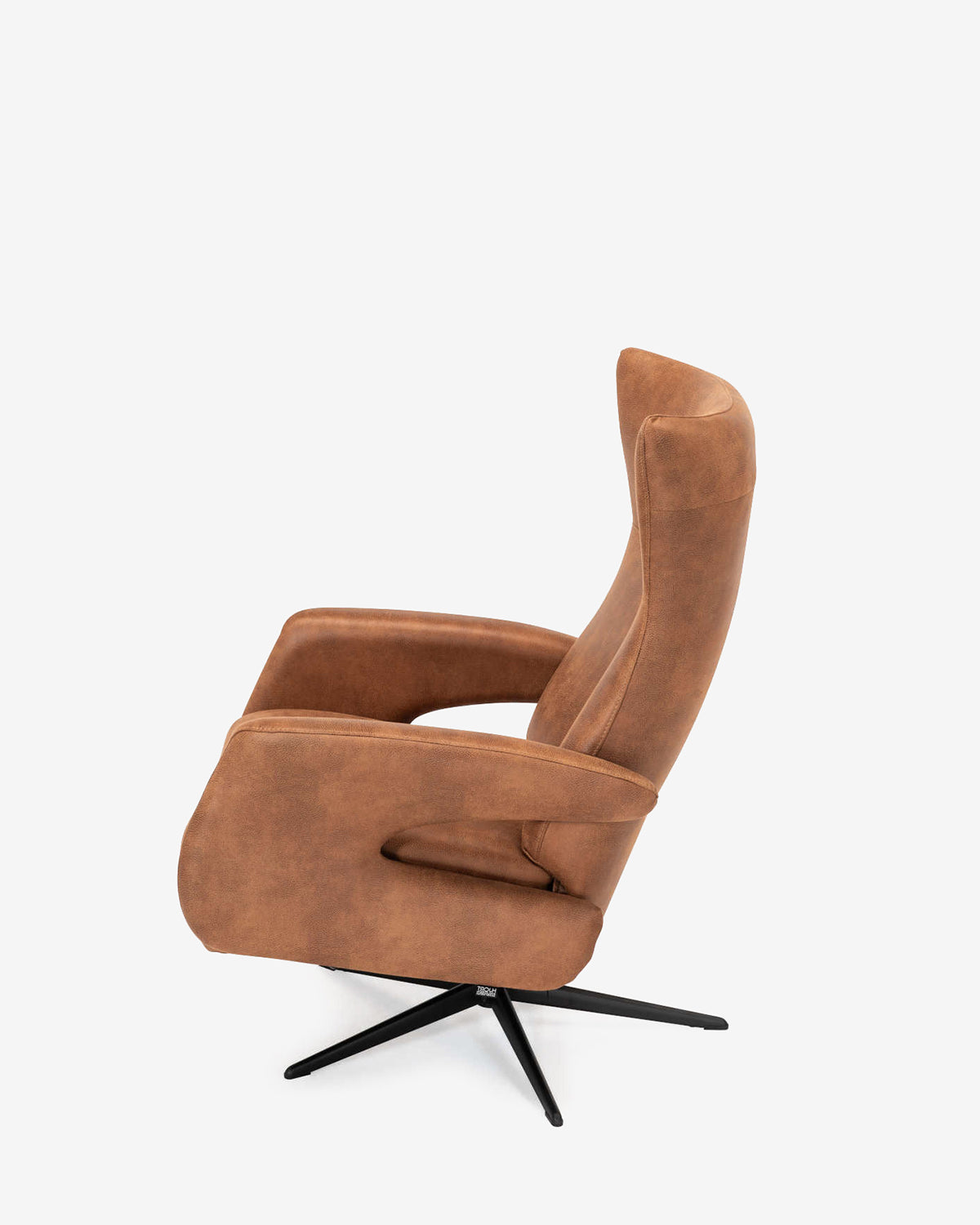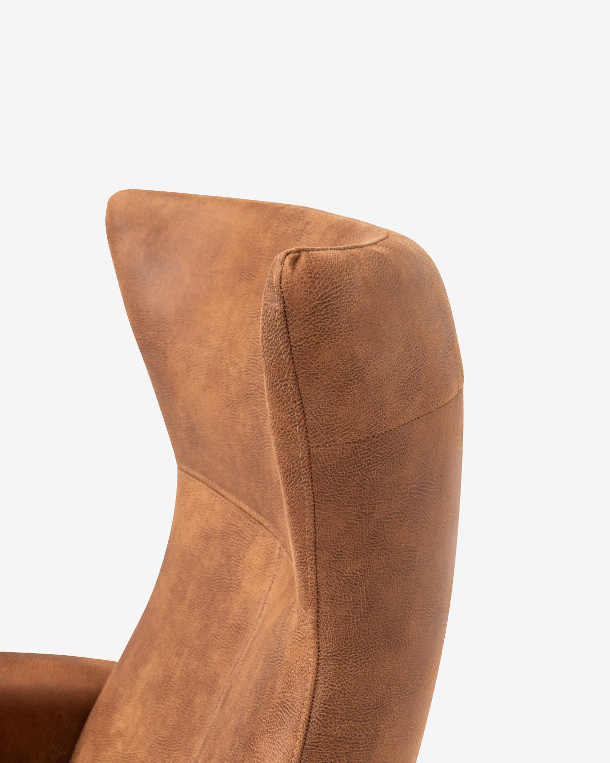 Masset er en moderne og funktionel lænestol designet til afslapning med fokus på komfort og brugervenlighed. Stolen er betrukket i cognacfarvet Kentucky-stof, som tilfører varme og karakter til indretningen. Kentucky-stoffet er præget med læderstruktur, hvilket giver en blød og levende overflade med masser af dybde og spil.