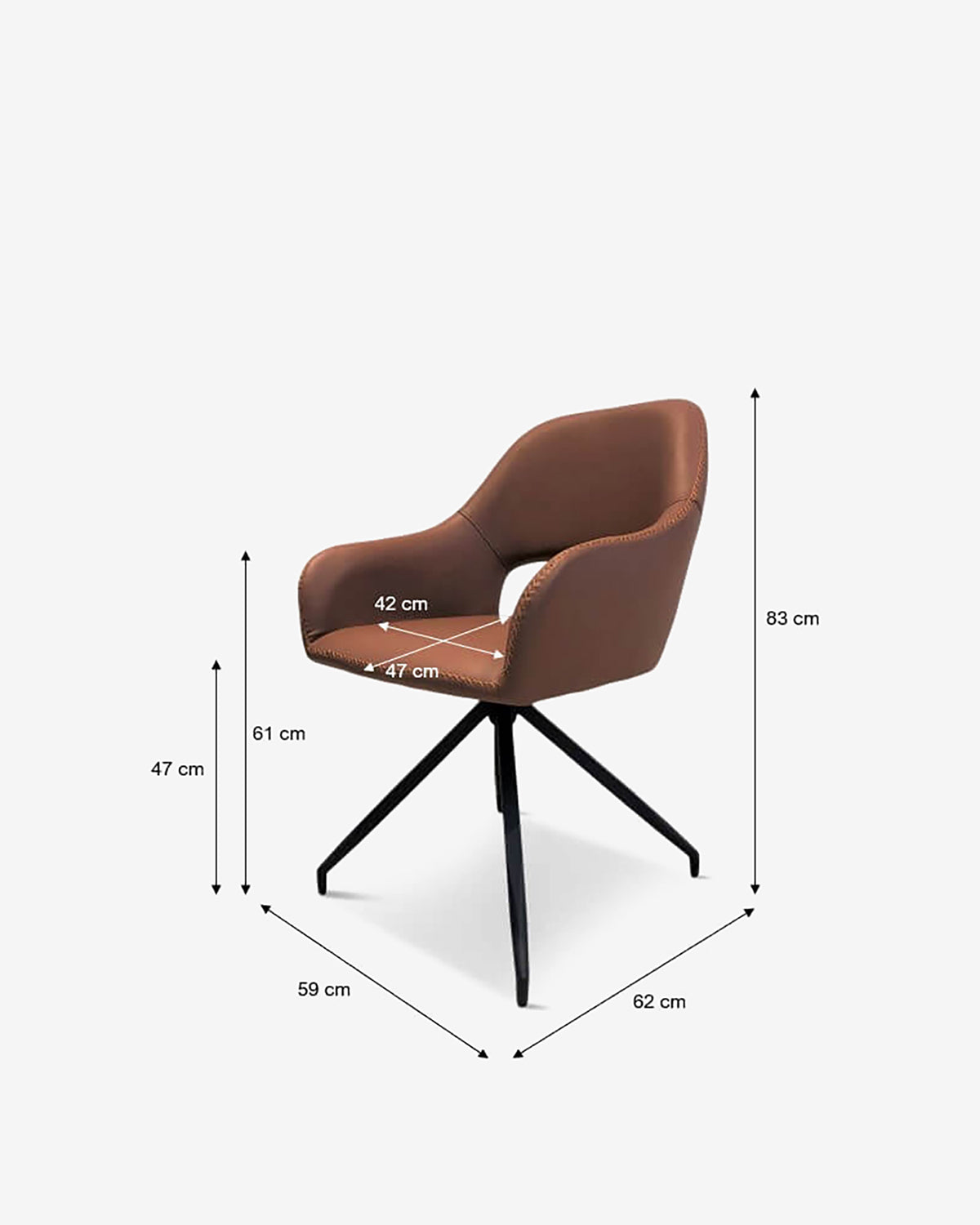 Nola er en smuk spisebordsstol i nordisk design med bløde og slanke linjer. Spisestolen har fine detaljer som krydssyninger og drejestel.