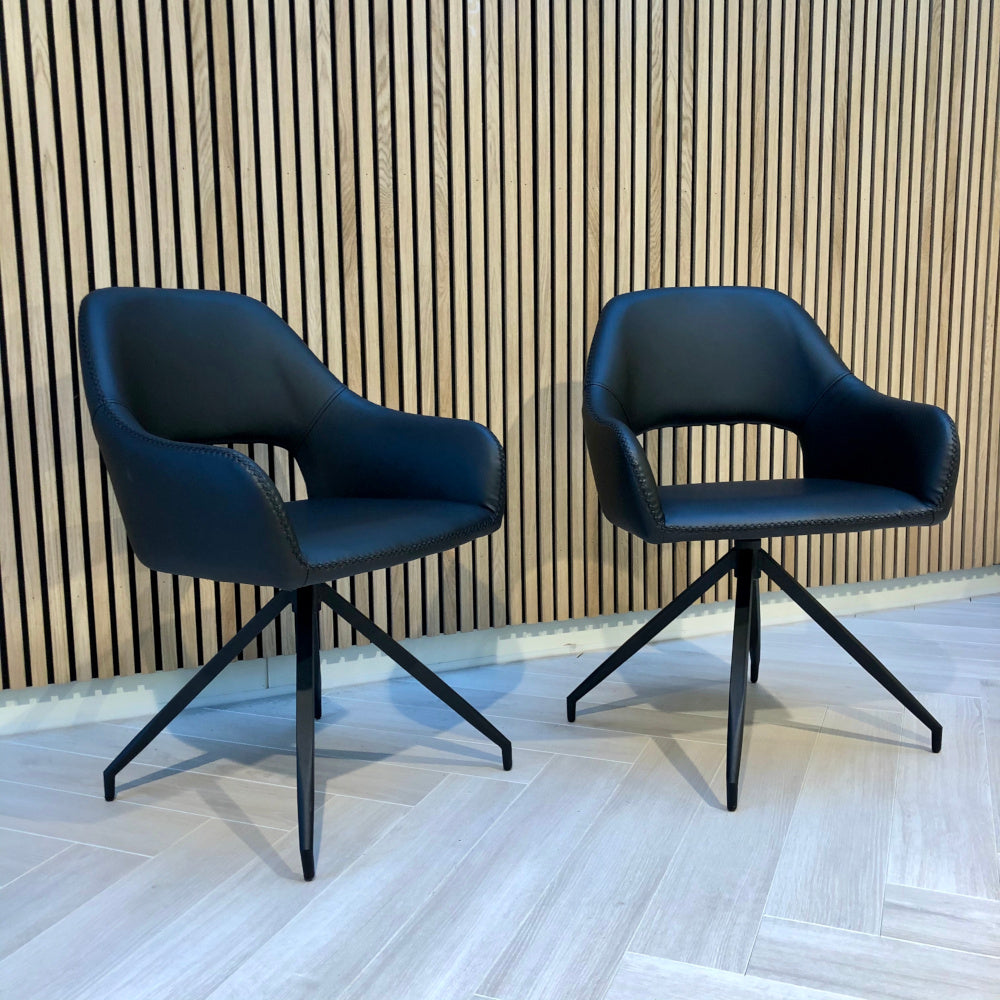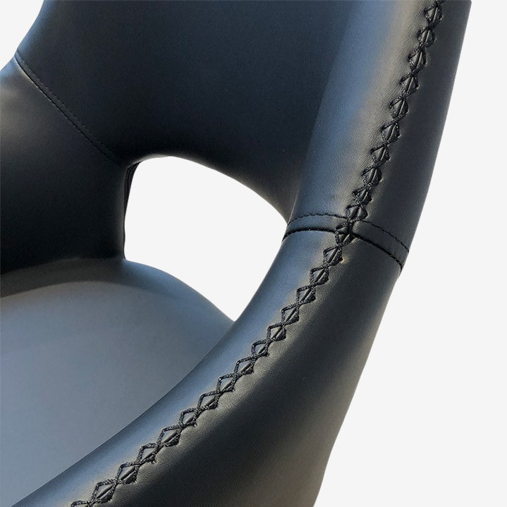 Nola er en rigtig smuk spisebordsstol i nordisk design med bløde og slanke linjer. Nola har fine detaljer som krydssyninger, slankt design og sort lakeret drejestel.