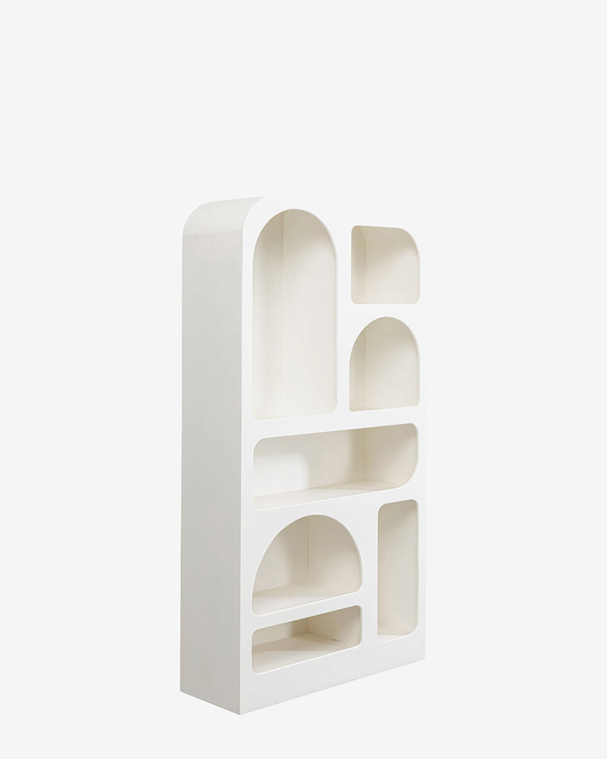 Paco reolen med runde, buede former i hvid er en elegant reol, som passer ind i mange forskellige indretninger.
