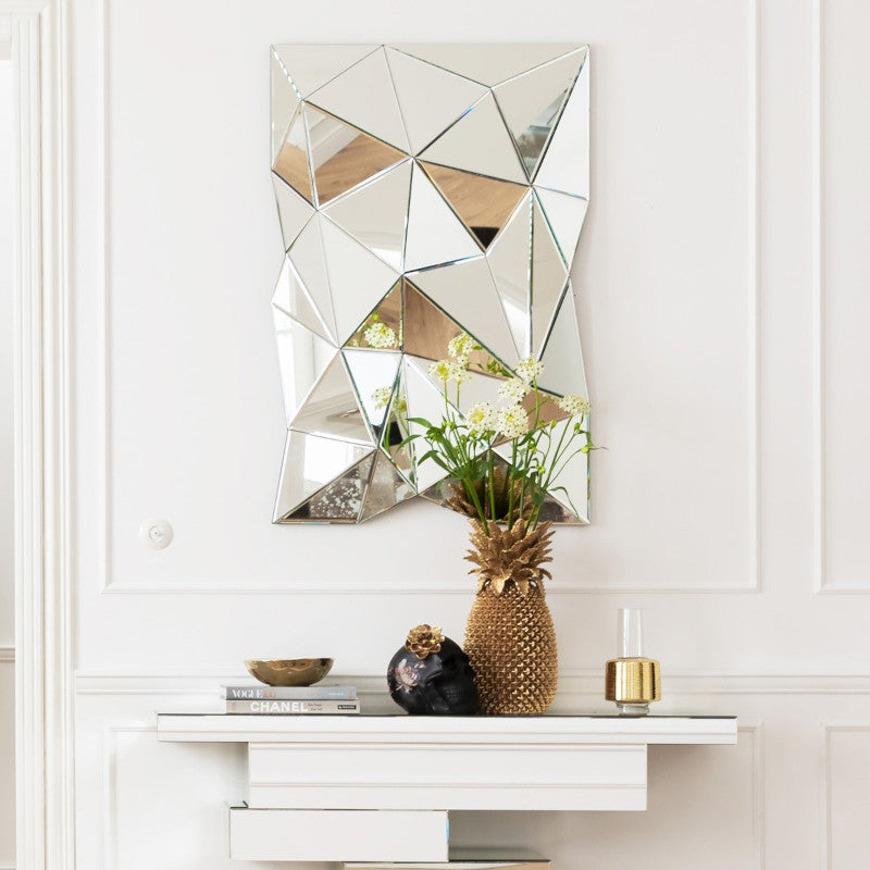 Et designerspejl, der skaber en ægte effekt - Dette spejl er et kunstværk, med små reflekterende trekanter arrangeret for at skabe en fascinerende overflade.