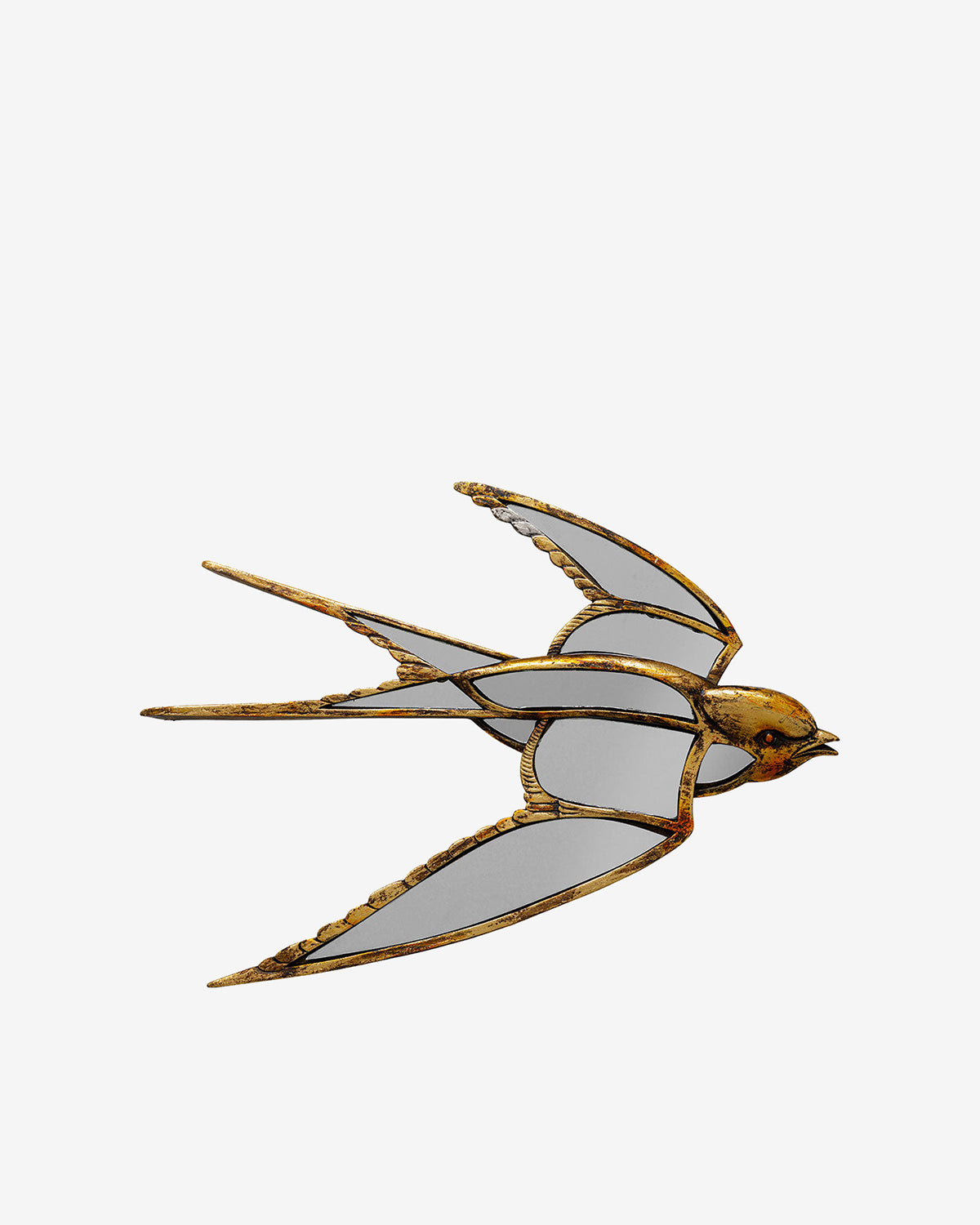 Svale Vægspejl – let elegance med gyldent touch. Svale vægspejlet er formet som en flyvende svale, der tilføjer et let udtryk.