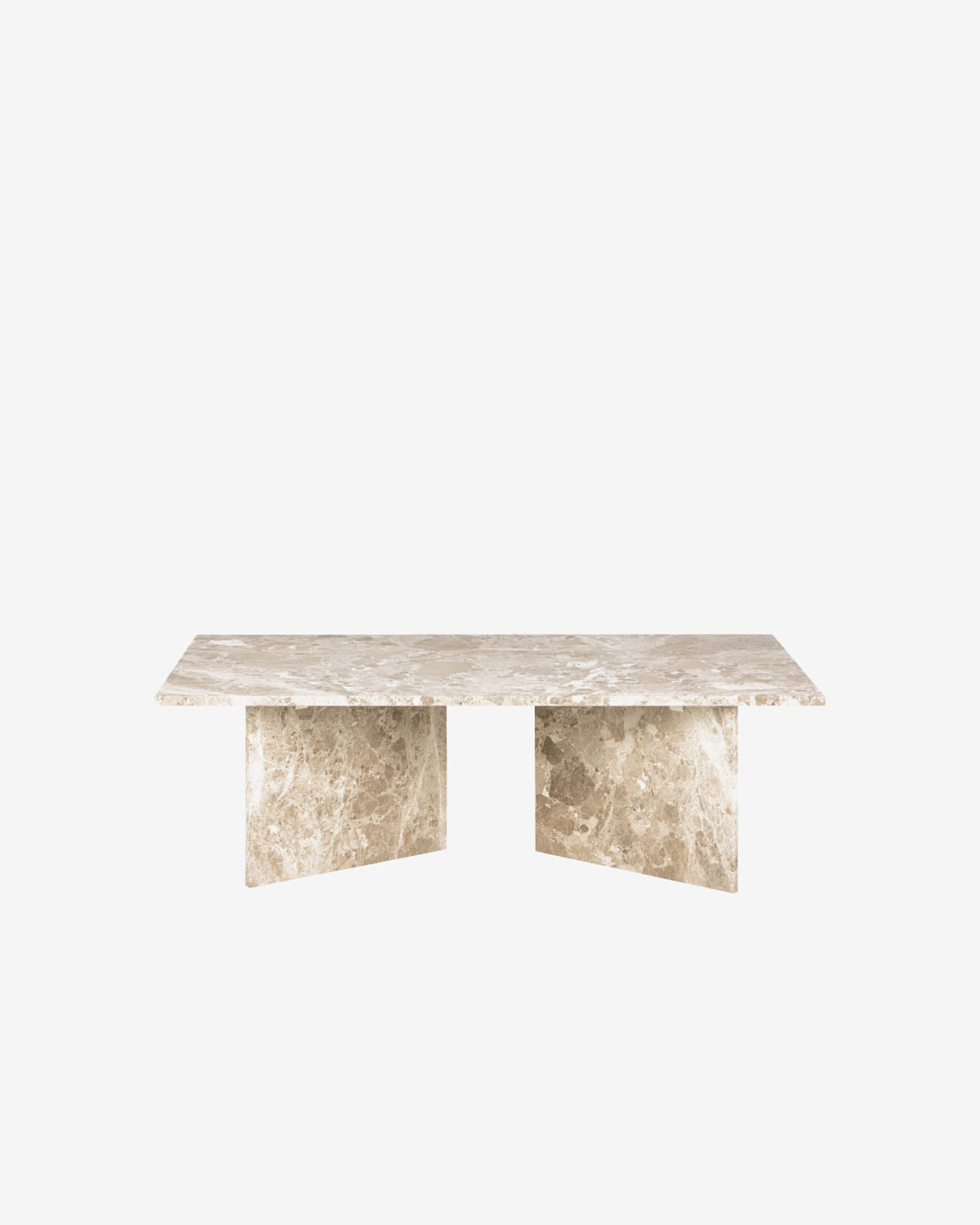 Vega Sofabord – naturlig elegance i beige marmor. Vega sofabordet bringer en eksklusiv ro ind i din stue.