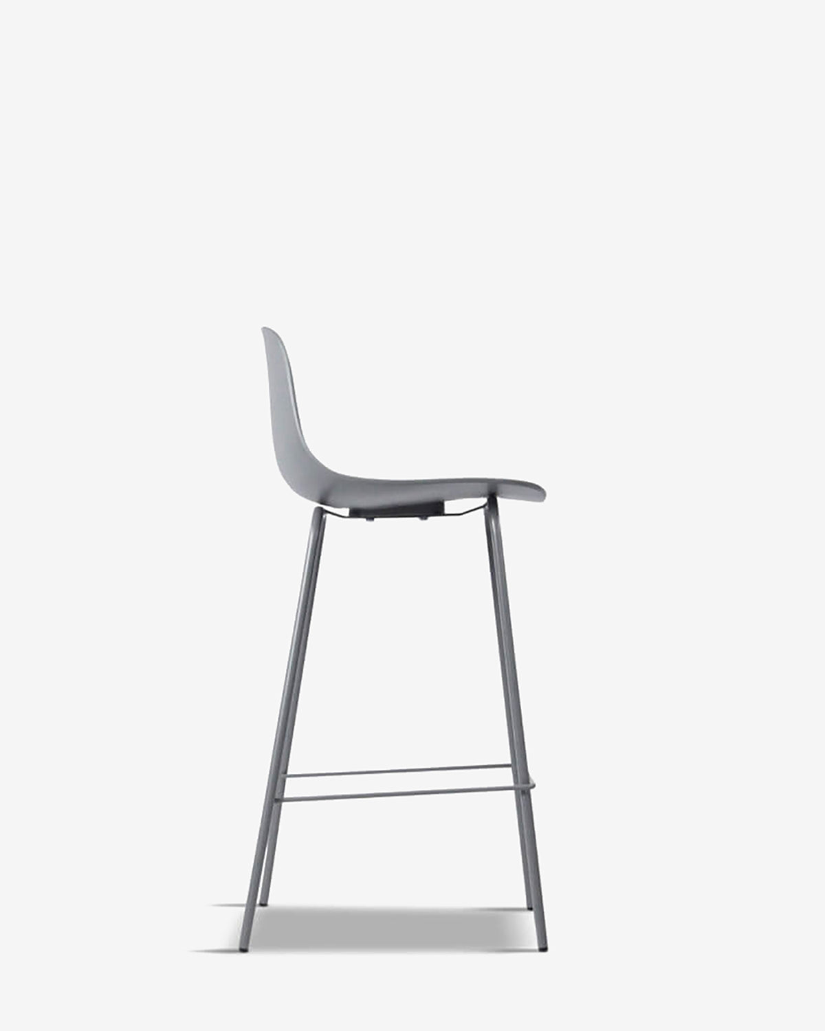 Whitby barstolen findes i 5 trendy farver, her vist i grå, med matchende grå metalben.