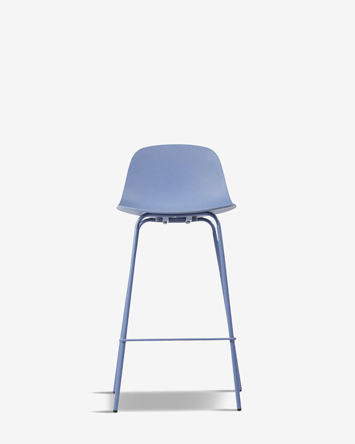 Whitby barstolen findes i 5 trendy farver, her vist i støvet blå, med matchende metalben.