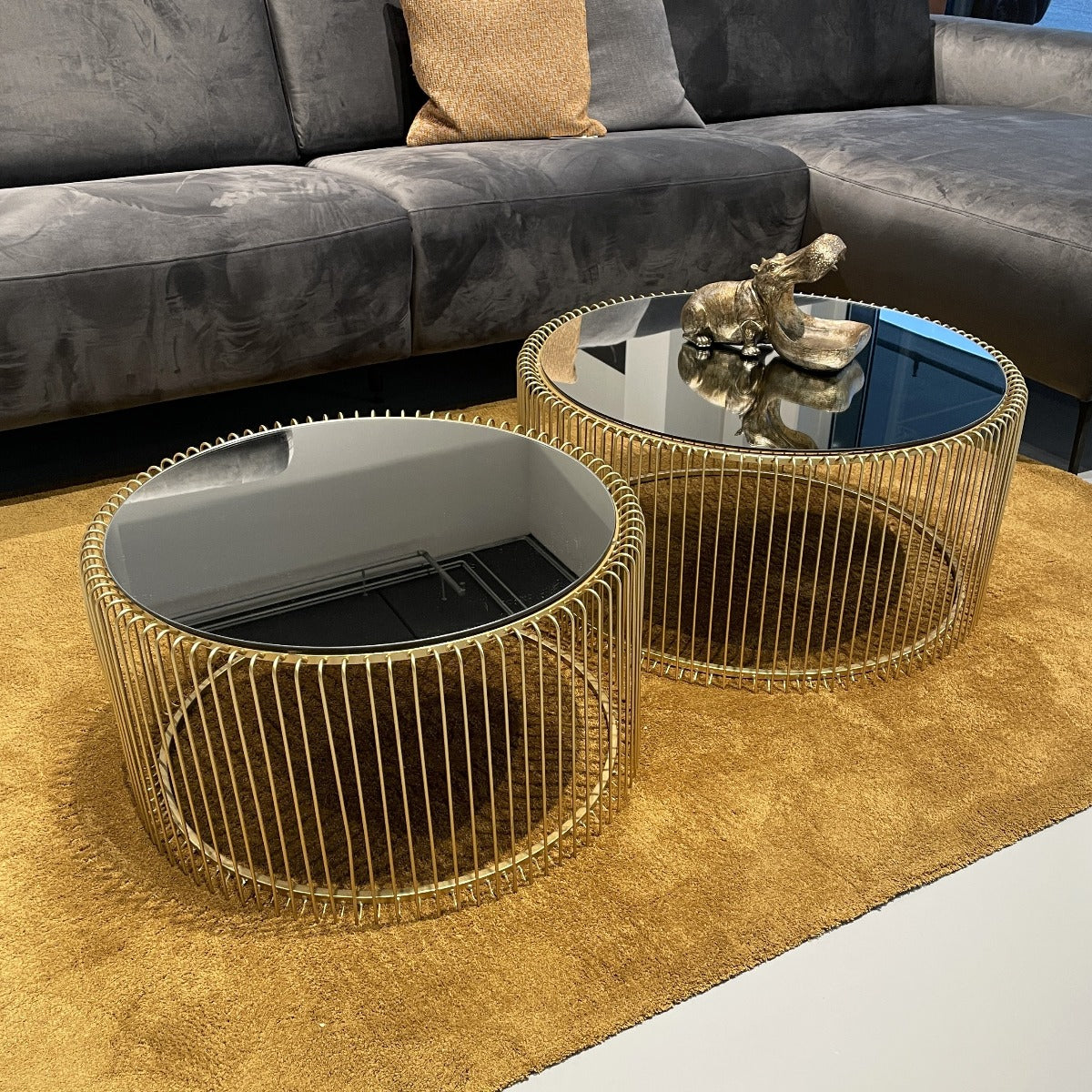 Sofabordssæt i messing med spejlglasplade. Smukke borde i lækkert design. Spejlpladen tager farve fra dine andre møbler og gør den spændende at se på. Brug bordene sammen eller hver for sig eventuelt i en lounge sammen med et par lækre lænestole.